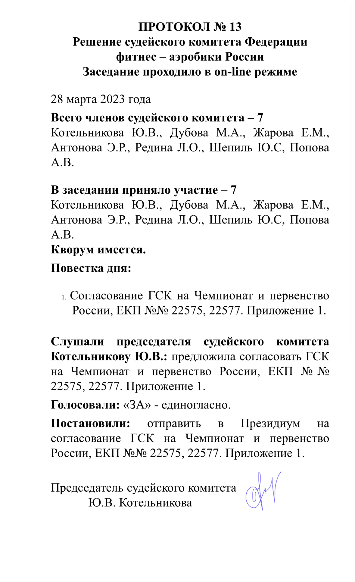 Протокол СК № 13 от 28.03.2023