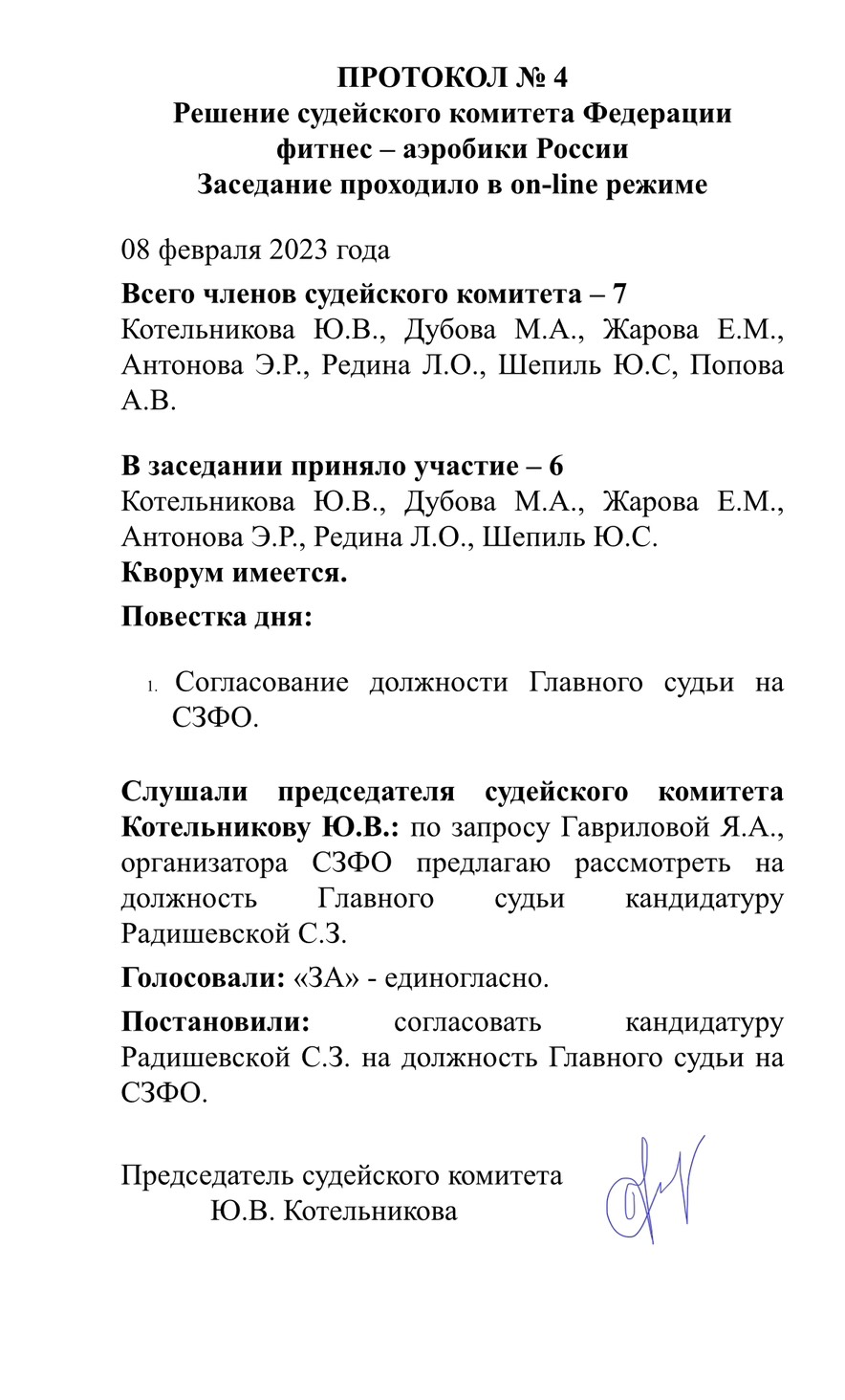 Протокол судейской коллегии №4 от 8.02.2023