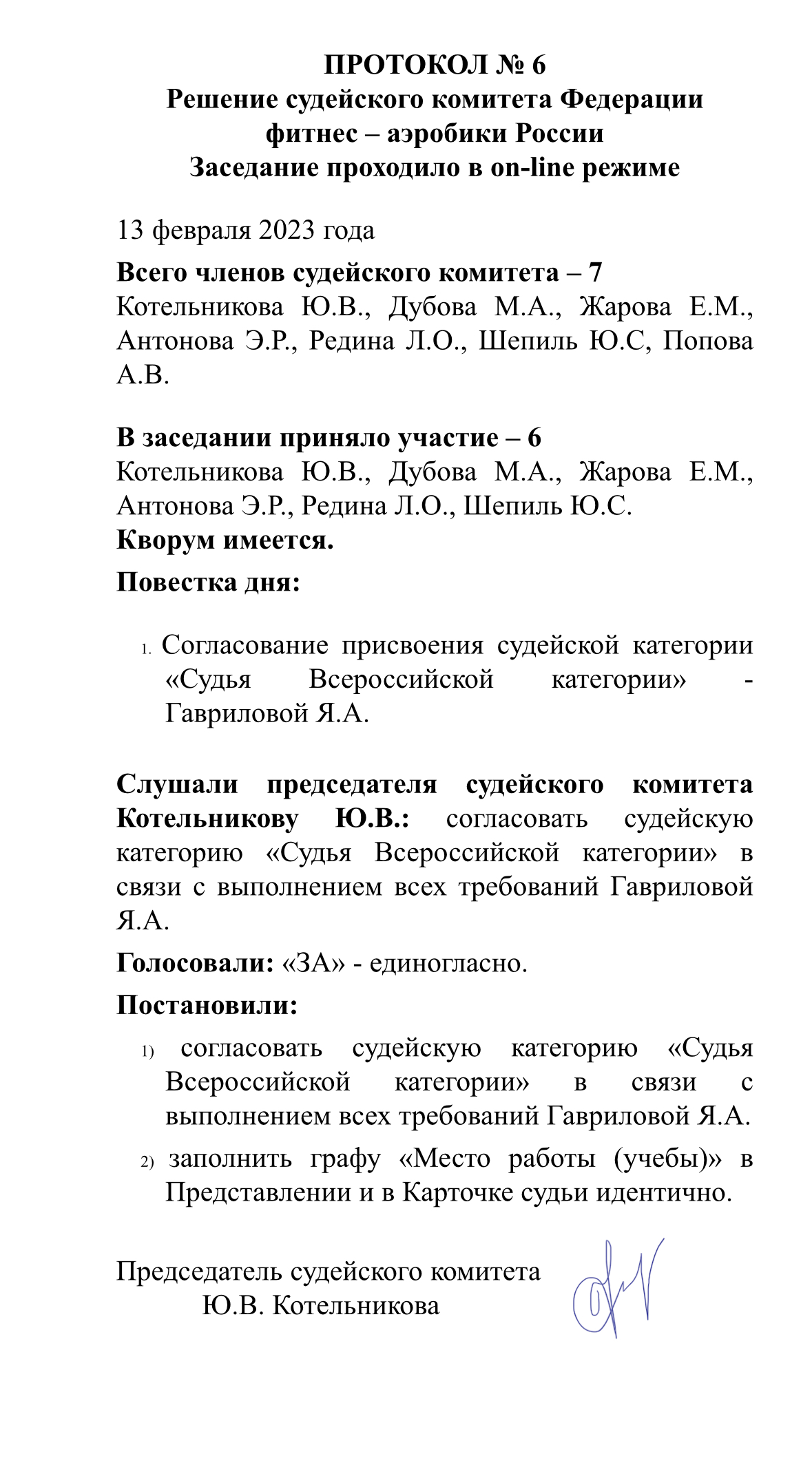 Протокол судейской коллегии №6 от 13.02.2023