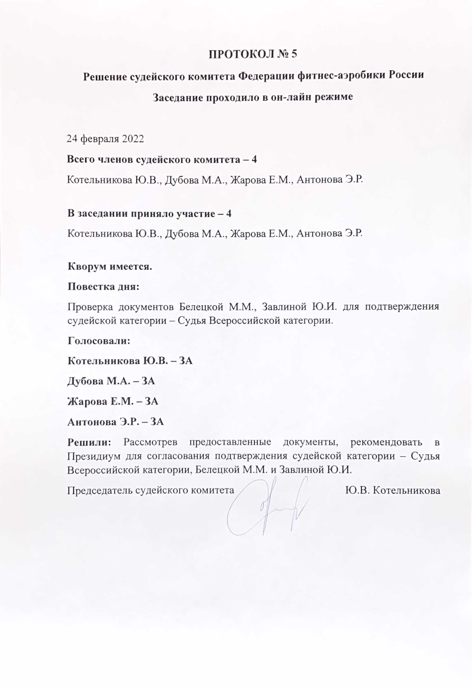 Решение Президиума №90 - о присвоении всероссийской категории Белецкой М.М. и Завлиной Ю.И.