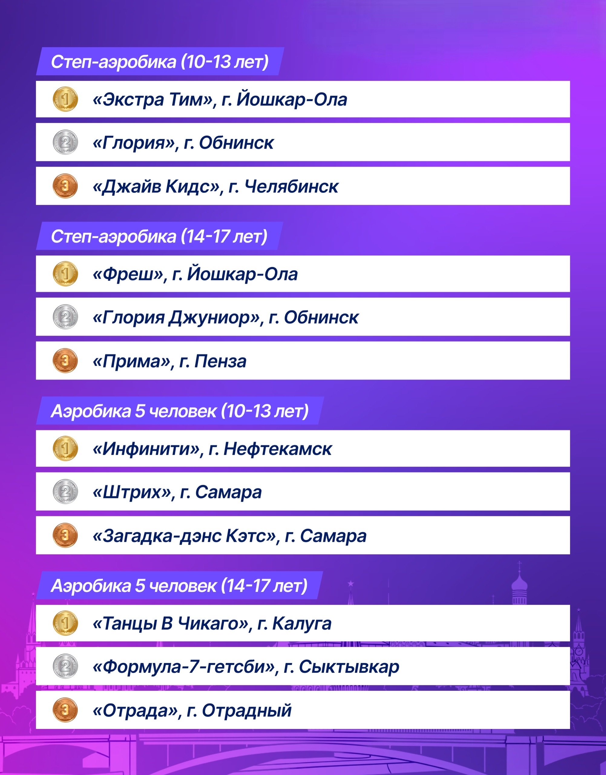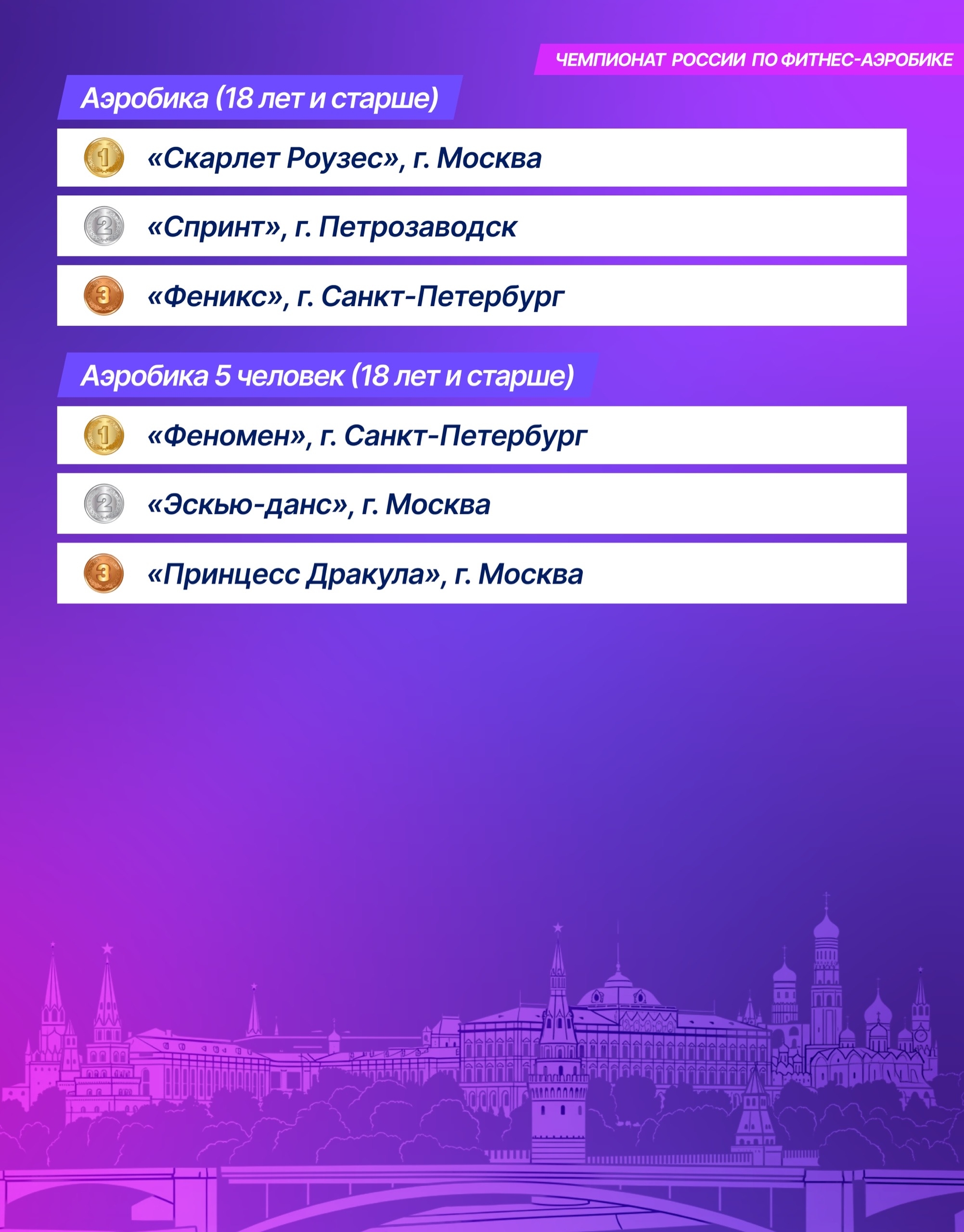 А вот и результаты Чемпионата и Первенства России по фитнес-аэробике!