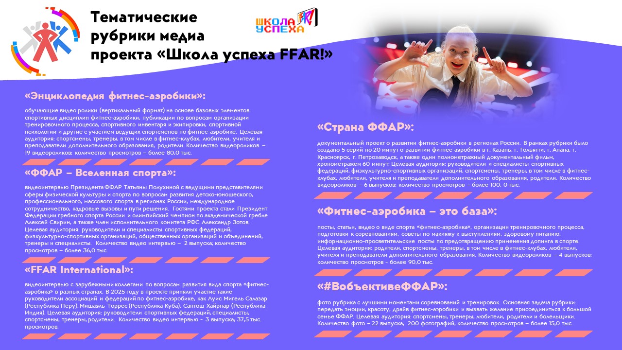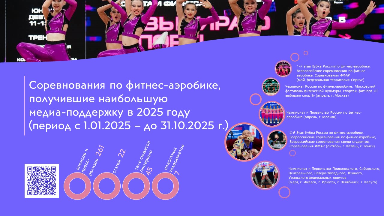 По данным медиарейтинга Министерства спорта России, Федерация фитнес‑аэробики России занимает место в Первой лиге.